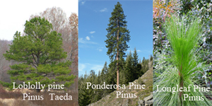Important pines for turpentine production include: